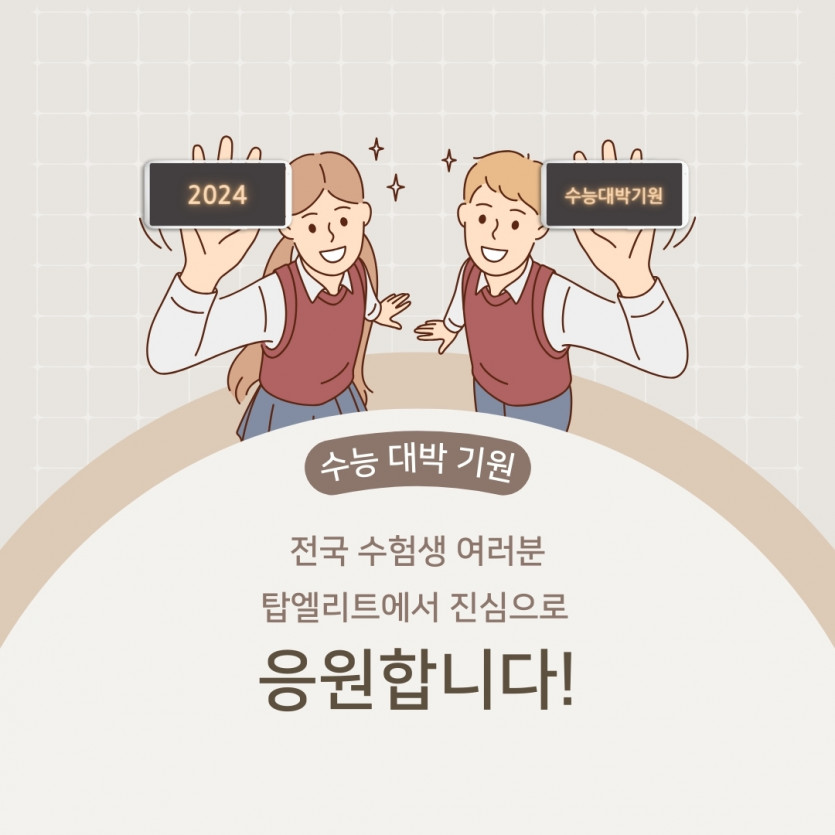 튜터스 과외는 올해 수능을 치르는 모든 수험생 여러분에게 진심 어린 응원의 메시지를 전달합니다. 이 중요한 시험에서 여러분 모두가 최고의 성과를 거두기를 바라며, 그 마음을 담아 특별한 이미지를 준비했습니다.